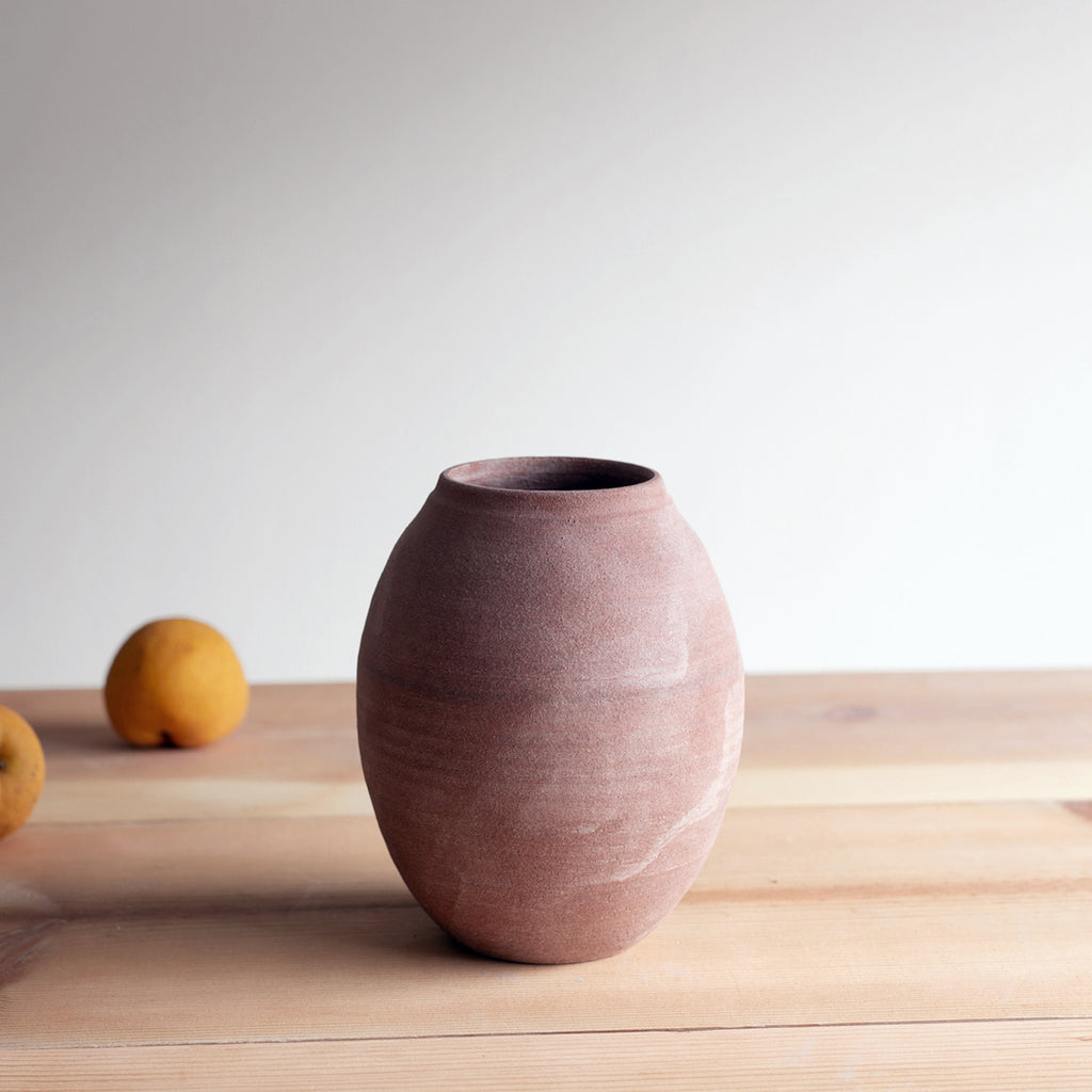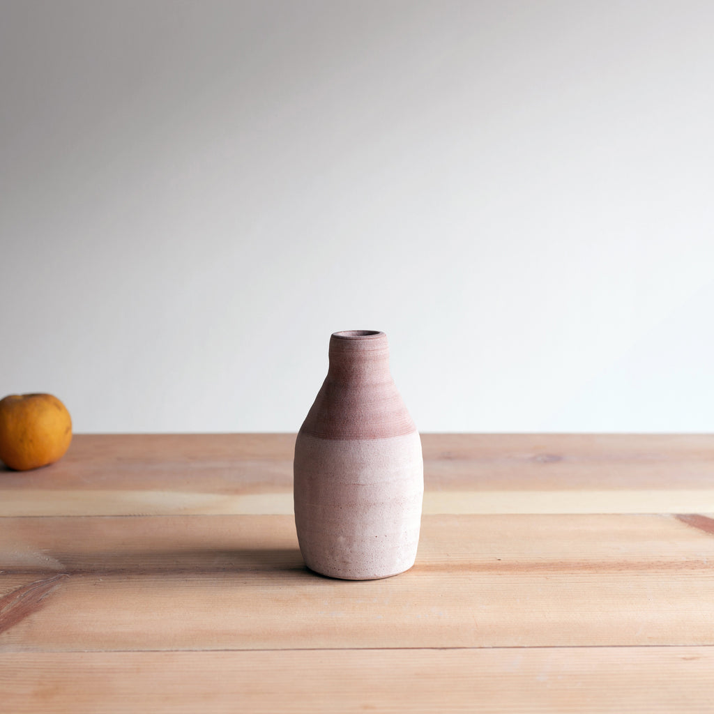 The Terra Cotta Round Bottle Vase features a stout, rustic form made two-toned by the addition of porcelain slip brushed on rich terra cotta. This handmade piece is perfect as a bud vase for both dried and fresh flowers alike. The ceramic vase is made entirely by hand and no two pieces are alike.