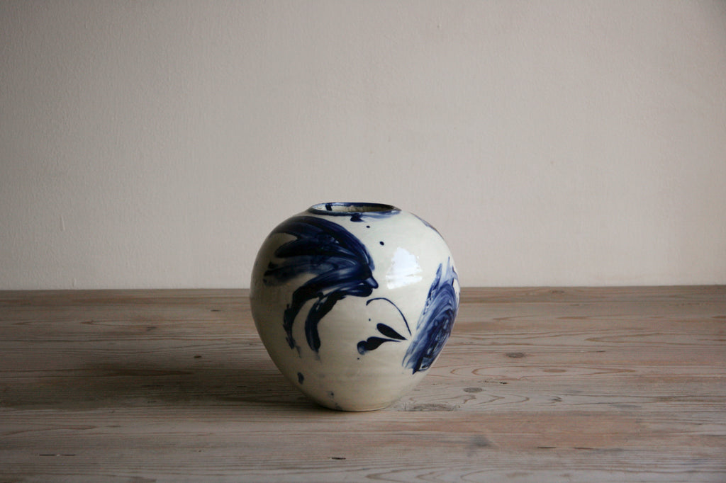 The Cobalt & White Collection is inspired by a classic color combination with a long tradition in ceramics. These vases are made by hand from wheel-thrown terra cotta clay. Cobalt oxide is applied over a layer of crackle slip. A coating of clear glaze gives these handmade vases a glossy finish. These one-of-a-kind pieces would make a beautiful addition to any space.